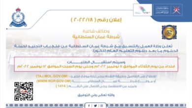 مسقط – النبأ تعلن وزارة العمـل بالتنسيق مـع شـرطـة عمـان السلطانية عـن فـتـح بـاب التجنيد لحملـة الدبلــوم مـا بـعـد دبلــوم…