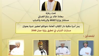 صلالة – النبأ تقام مساء غدا الاربعاء بمكتبة دار الكتاب العامة بصلالة ندوة بعنوان مسارات الشباب في تحقيق رؤية عمان…