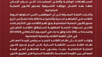 مسقط : النبأ اللجنة المشرفة على مشروع إعداد أنظمة التقاعد والحماية الاجتماعية تكشف عن أن الموظفين الذين استوفوا شروط…