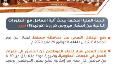 مسقط : مصطفى أحمد قررت اللجنة العليا المكلفة بالتعامل مع انتشار كوفيد19 بالسلطنة في اجتماعها اليوم برئاسة معالي السيد…