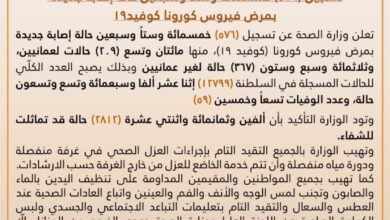 أعلنت وزارة الصحة عن تسجيل (576) خمسمائة وستاً وسبعين حالة إصابة جديدة بمرض فيروس كورونا #كوفيد_١٩، منها مائتان وتسع (209)…