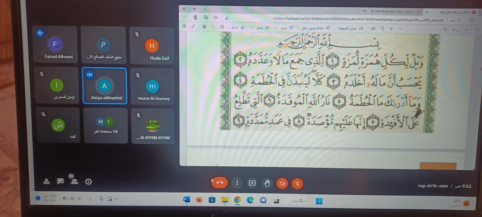 بدأت وحدة المجال الأول بتعليمية شمال الباطنة اليوم الأحد ٨ من يناير ٢٠٢٣م تنفيذ برنامجاً تدريبياً ضمن خطة الإنماء المهني للوحدة في محور التحصيل الدراسي تحت مظلة مشروع الإتقان في تلاوة وحفظ القرآن في مادة التربية الإسلامية، وذلك من خلال برامج الاجتماع الافتراضي برعاية الفاضل خلفان بن طالب العويسي مشرف أول بالمديرية العامة للإشراف التربوي بوزارة التربية والتعليم والفاضل سعيد بن عبدالله المعمري مشرف أول مجال أول بمحافظة شمال الباطنة.