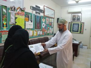 في ختام المحاضرة كرم الأستاذ حمد المحروقي مدير مدرسة أسامة بن زيد الأخصائية أسماء السليمانية والأخصائية هدى الصباحي نظير الجهود المبذولة.