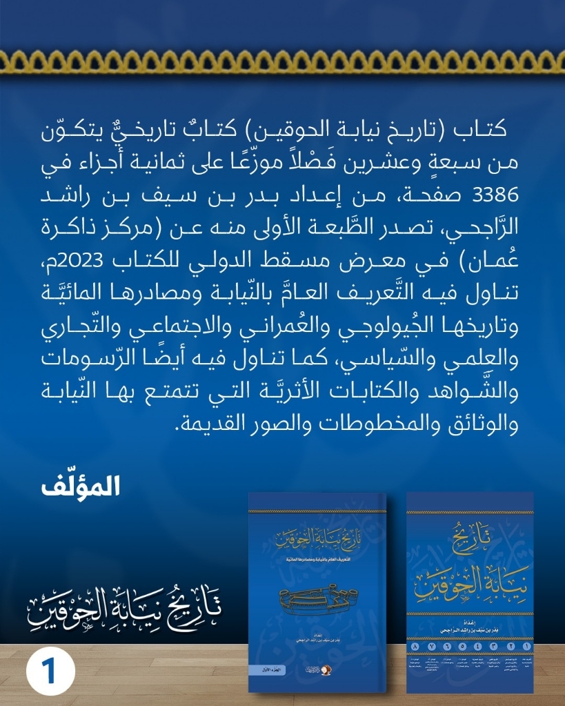 صدور كتاب تاريخ نيابة الحوقين من ثمانية أجزاء في 3386 صفحة