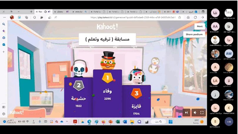 وشاركت المكرمة الدكتورة ريا المنذرية بكلمة تحفيزية تهدف لاستثمار طاقات الطلبة والتغلب على المشكلات وتخلل البرنامج مسابقة ترفيهية باستخدام برنامج كاهوت أدارتها منى البريكية واختتم البرنامج بكلمة من المشرفة التربوية رقية الجهورية.