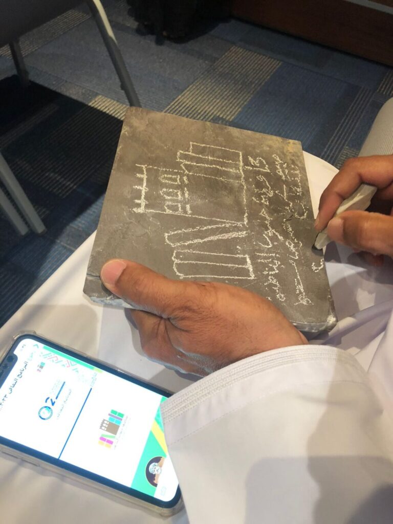 إن هذه الصخور طينية الأصل وتعرف بسطحها الاملس التي تناسبت مع وجود بعض الاحجار البيضاء الهشة التي تم استخدامها كطبشور .. لذلك كان تركيز هذه الحلقة على إمكانية ممارسة الكتابة والرسم على هذه الصخور ومختلف الفنون التشكيلية التي يمكن أن تكون هذه الصخور أحد موادها الخام.