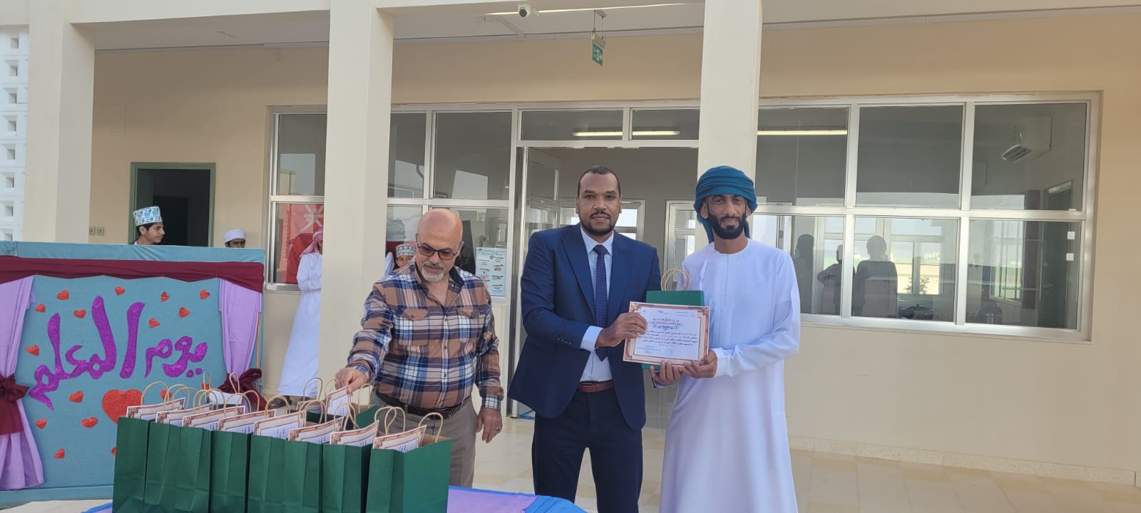تكريما للمعلم ودوره الذي يقوم به في تنشئة الأجيال، احتفلت عدد من مدارس تعليمية الوسطى بيوم المعلم العماني حيث نفذت مدرسة حج في الطابور المدرسي برنامج مميز من تقديم المعلمات تضمن أحاديث نبوية عن مكانة العلم والمعلم تخلله عروض تبرز أهمية المعلم ودوره في بناء جيل متسلح بالعلم والمعرفة اختتم بتكريم المعلمات والهيئة الإدارية. بينما احتفلت مدرسة أبو مضابي ومدرسة الجوبة للتعليم الأساسي بالمناسبة بكلمات الشكر والهدايا التذكارية للمعلمين تقديرا وعرفانا لجهودهم المبذولة.