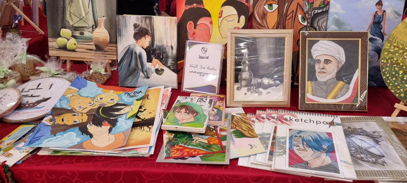 حيث كانت فيها الاعمال المقدمة من المشرفتين الدكتورة/ عواطف الغافرية من محافظة شمال الباطنة والاستاذة/ أسماء المجينية من محافظة جنوب الباطنة ومعلمات الفنون التشكيلية وطالبات من المحافظتين جنوب وشمال الباطنة في مجال تنمية وتجويد المواهب الفنية.
