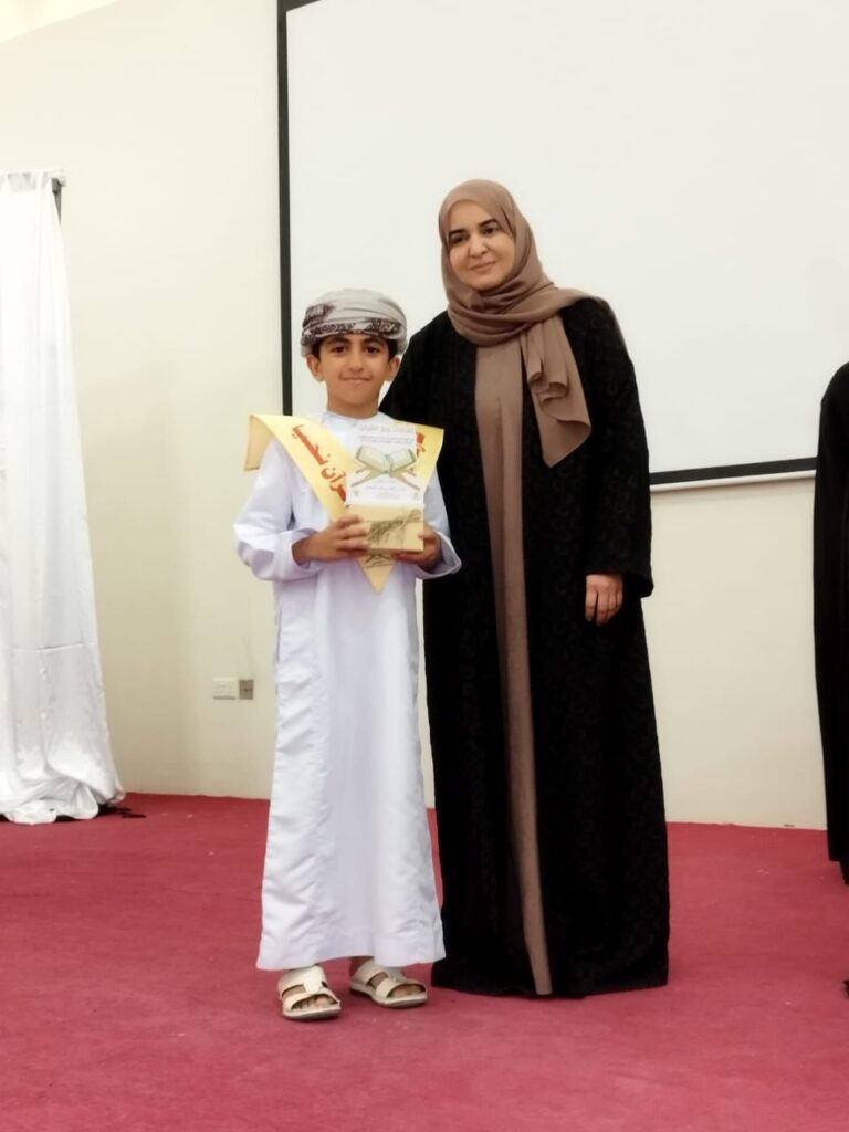 ثم تلاها تكريم الطلبة المجيدين في حفظ وتلاوة القرآن الكريم الذين حققوا مراكز متقدمة على مستوى الولاية وتأهلوا على مستوى المحافظة في مسابقةحفظ القرآن الكريم وتكريم أمهاتهم اللواتي كن أكثر حرصا على متابعتهم وتمكنهم.