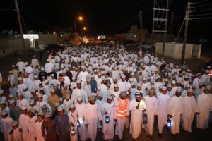 يجوبون الأطفال والشباب (ذكوراً ونساءًا) خلالها الشوارع والأزقة والحارات القديمة مهللين ومكبرين وهاتفين بعد كل بيت شعري (لا اله الا الله)و ما زالت هذه العادة الحميدة الى اليوم.