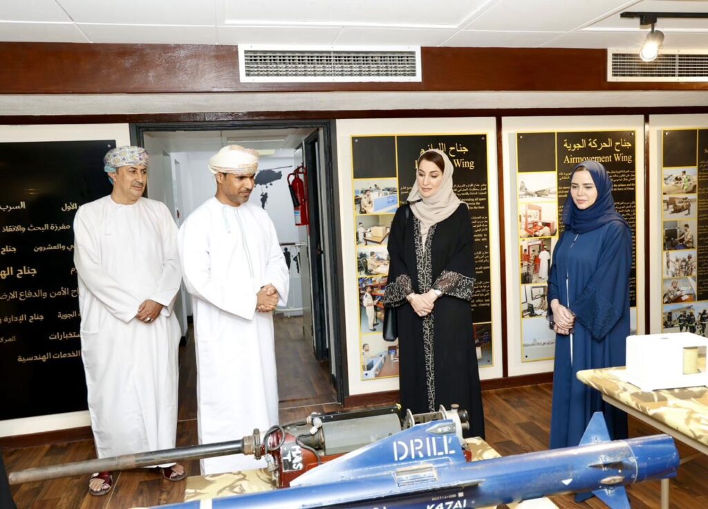 وفي ذات السياق، قامت صاحبة السمو السيدة الدكتورة منى بنت فهد آل سعيد رئيسة مجلس إدارة الجمعية وأعضاء مجلس إدارة الجمعية يوم أمس الأحد بزيارة لمتحف قاعدة مصيرة الجوية، وكان في استقبالهم المقدم ركن طيار علي بن مكتوم المنذري مساعد قائد قاعدة مصيرة الجوية.
