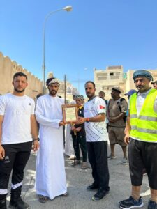 في نهاية المسار قدم رئيس فريق نخل للمغامرات والمسير الحر هدية تذكارية لفريق الأبيض الخيري .