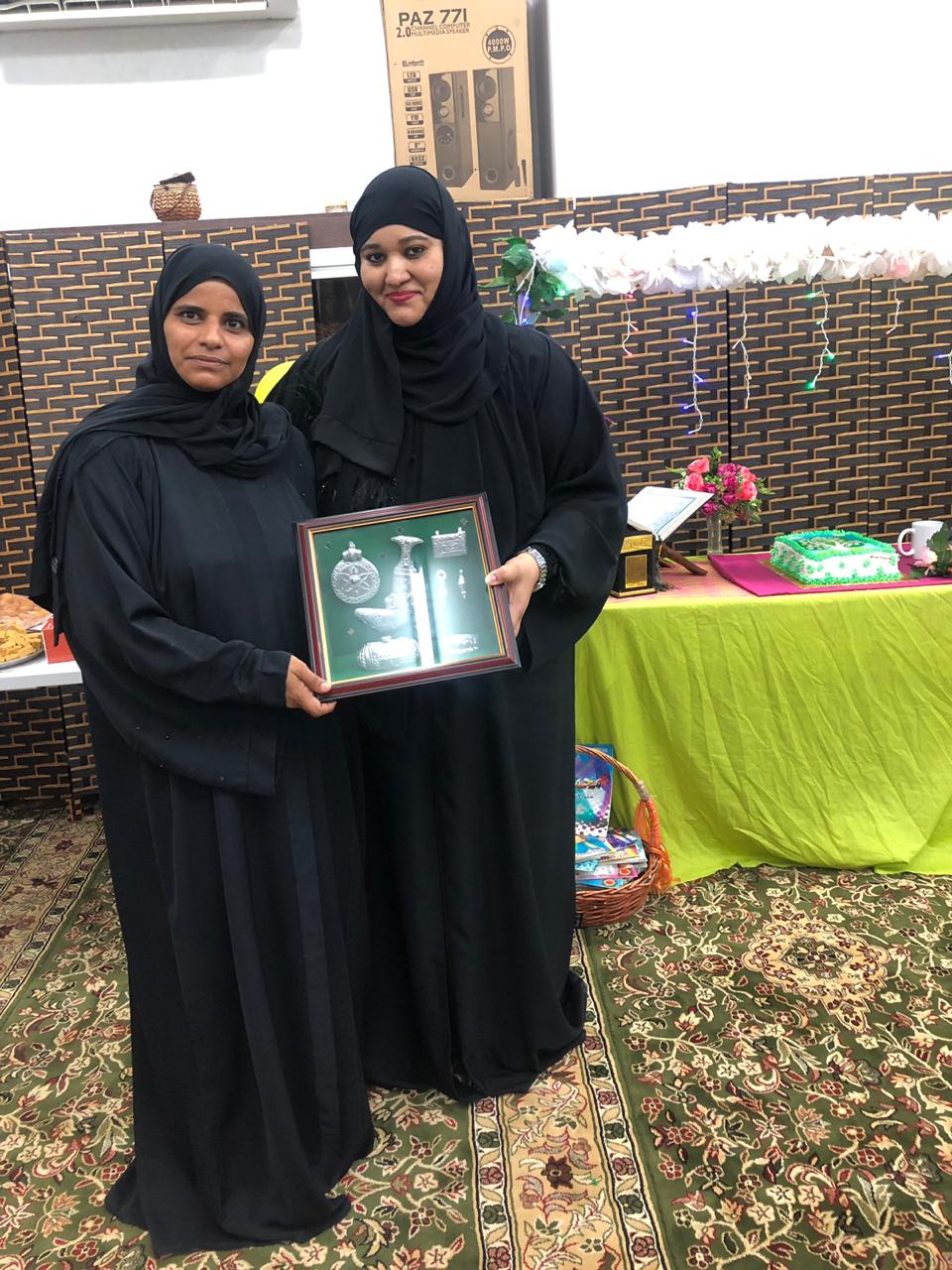 وفي الختام قامت راعية الحفل بتكريم الطلاب والمعلمات، وقامت الأستاذة خالصة المحرمية منسقة مجلس النساء بجامع الشريجة بتقديم هدية تذكارية تكريما لراعية الحفل.