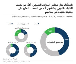 وقال جميع الشباب الإماراتيين تقريباً (98٪) إنهم واثقون من قدرة حكومتهم على معالجة مشكلة البطالة. وتكررت ذات النظرة الإيجابية لدى الشباب في السعودية (70٪) وسلطنة عمان (67٪) والكويت (64٪) والبحرين (61٪). وقال 20٪ فقط من الشباب الخليجي إنه من الصعب العثور على وظيفة في بلدانهم.