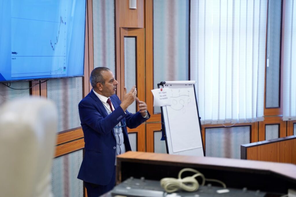 وأن من أهداف البرنامج والذي عقد في الفترة 24 إلى 26 سبتمبر 2023م . زيادة الوعي لدى أصحاب الأعمال والمؤسسات الصغيرة والمتوسطة قبل الدخول في أسوق المال وتهيئة المنتسبين لهذه الدورة في التحليل للقوائم المالية والفنية بالبورصة والتعرف على العوامل الاقتصادية المؤثرة على البورصة.