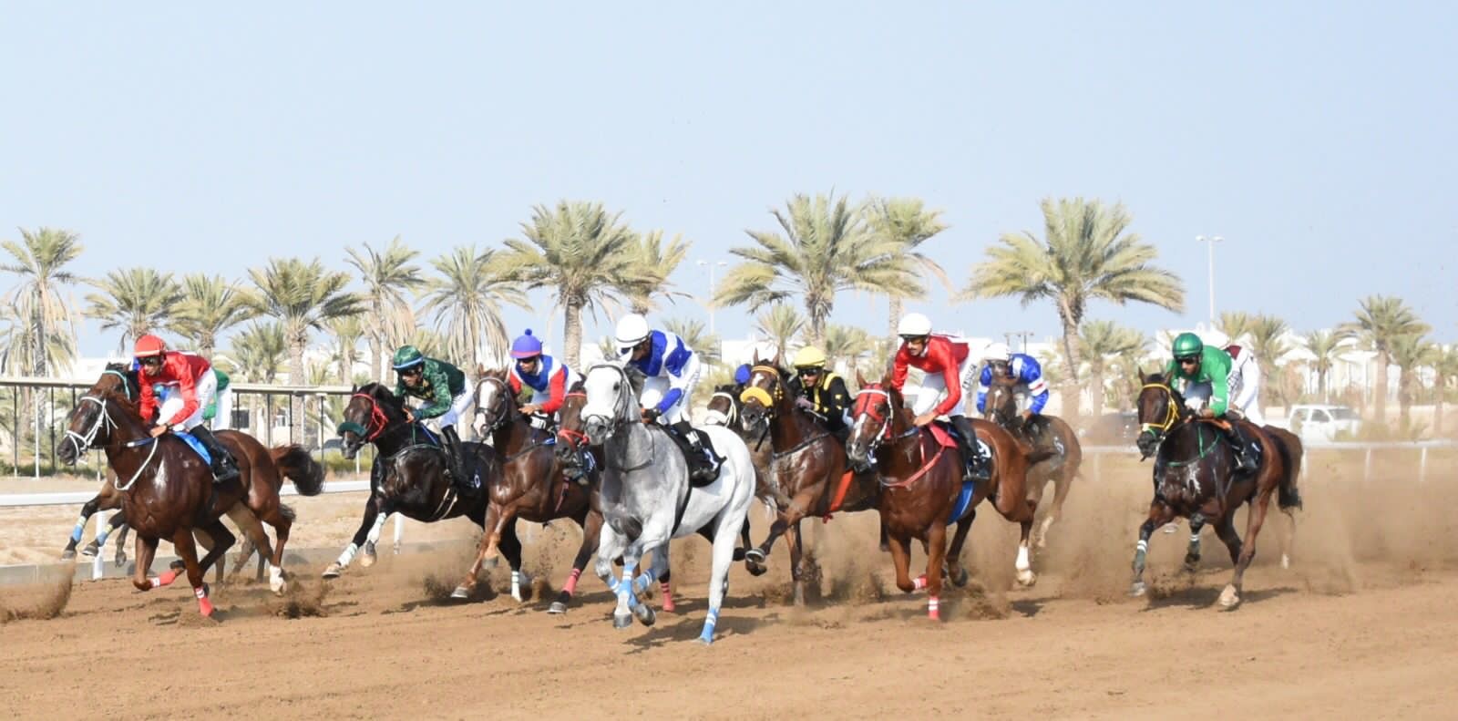 ثمانية أشواط في انطلاق سباق الخيل بمضمار الرحبة ببركاء