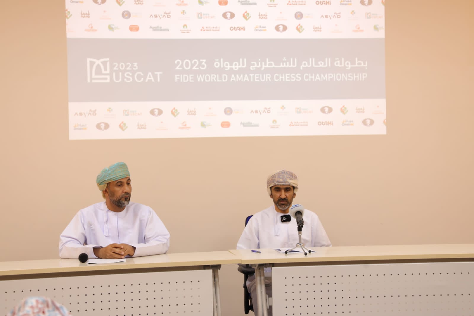 تنطلق يوم الخميس منافسات بطولة العالم للشطرنج للهواة ٢٠٢٣ التي تستضيفها سلطنة عُمان ممثلة في اللجنة العُمانية للشطرنج وذلك بالصالة الرئيسية لمجمع السلطان قابوس الرياضي ببوشر ذلك خلال الفترة من ١ إلى ١١ نوفمبر، جاء ذلك في المؤتمر الصحفي الذي عقدته اللجنة العُمانية للشطرنج ظهر اليوم الاثنين وكشفت خلالها تفاصيل البطولة مؤكدة على انتهاء كافة التجهيزات التنظيمية والفنية والإدارية لاستضافة أهم حدث قاري بحضور أحمد بن درويش البلوشي رئيس اللجنة العمانية للشطرنج ووسائل الإعلام المختلفة، وذلك بقاعة المحاضرات بمجمع السلطان قابوس الرياضي ببوشر