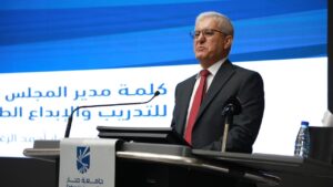 كما ألقى الأستاذ الدكتور فواز الزغول مدير المجلس العربي للتدريب والإبداع الطلابـي كلمة المجلس قال فيها “إن التعاون بين التعليم والملتقيات الإبداعية يعود على التعليم العالي بفوائد كبيرة للمجتمع الأوسع، حيث إن نتائج المشاريع الناجحة تسهم في التقدم العلمي في مختلف مجالات الحياة؛ كالاتصالات والهندسة وغيرها، ويمنح الفائدة للعديد من المؤسسات، وتظهر هذه الفائدة من خلال دعم استثمار الشركات في الجامعات، مما يسمح بتطوير العلم، وبالتالي الحصول على منتجات مجدية تجاريًا تساهم في النمو الاقتصادي.”