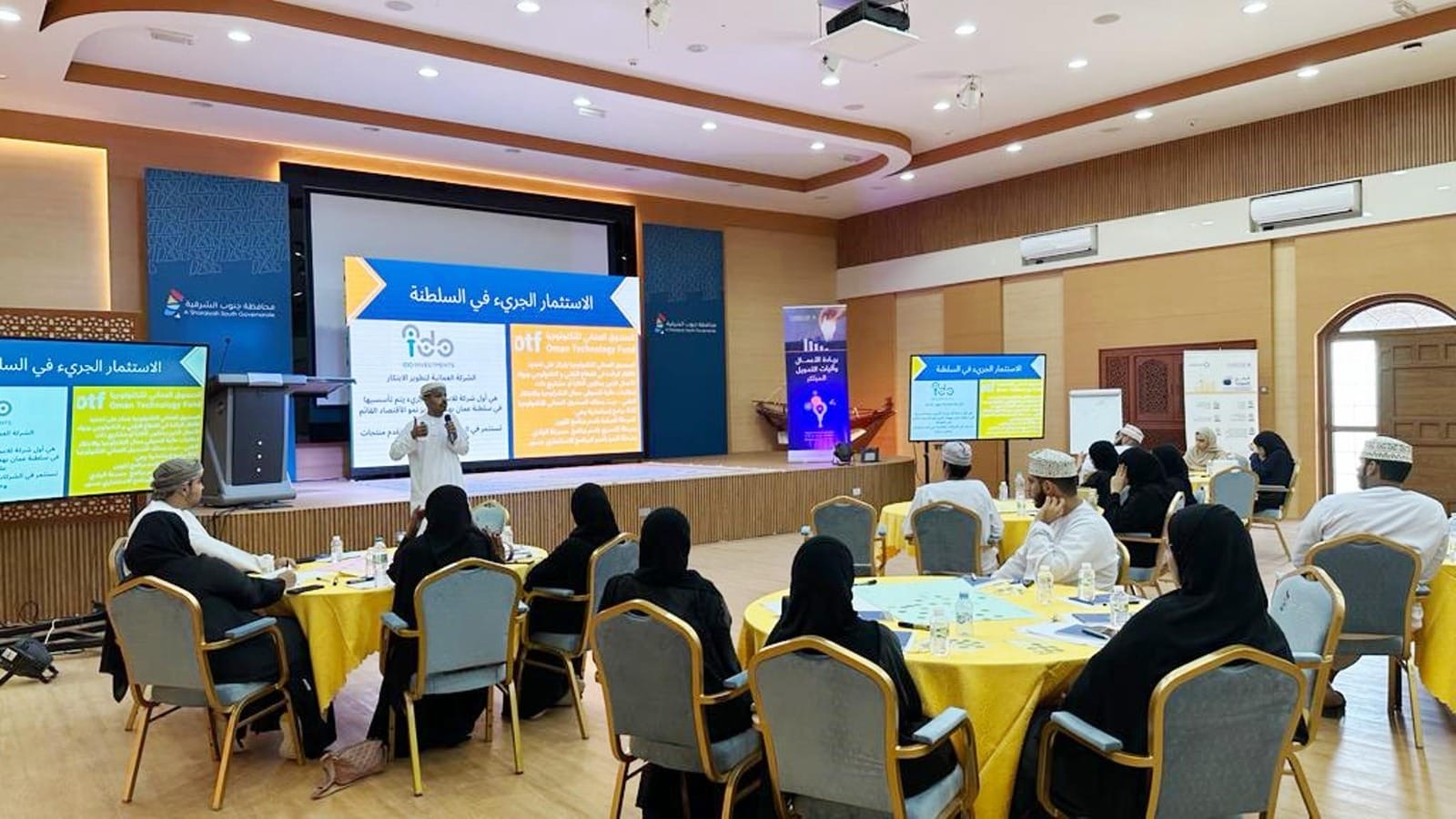 وتضمنت الفعالية الثانية حلقة عمل تدريبية للشركات الناشئة وآليات التمويل المبتكر بمحافظة جنوب الشرقية بالتعاون مع جامعة التقنية والعلوم التطبيقية بصور قدمها حمد بن جمعة الغيلاني اخصائي تمويل واستثمار بإدارة تنمية المؤسسات الصغيرة والمتوسطة بمحافظة جنوب الشرقية وذلك بقاعة المشارق ببلدية جنوب الشرقية تطرق من خلالها حول التعريف بالشركات الناشئة والفرق بين الشركات الناشئة والشركات التقليدية واهم العوامل التي تؤثر على نجاح وفشل الشركات الناشئة والتعريف باليات التمويل التقليدي واليات التمويل المبتكر ولفرق بين التمويل التقليدي والمبتكر