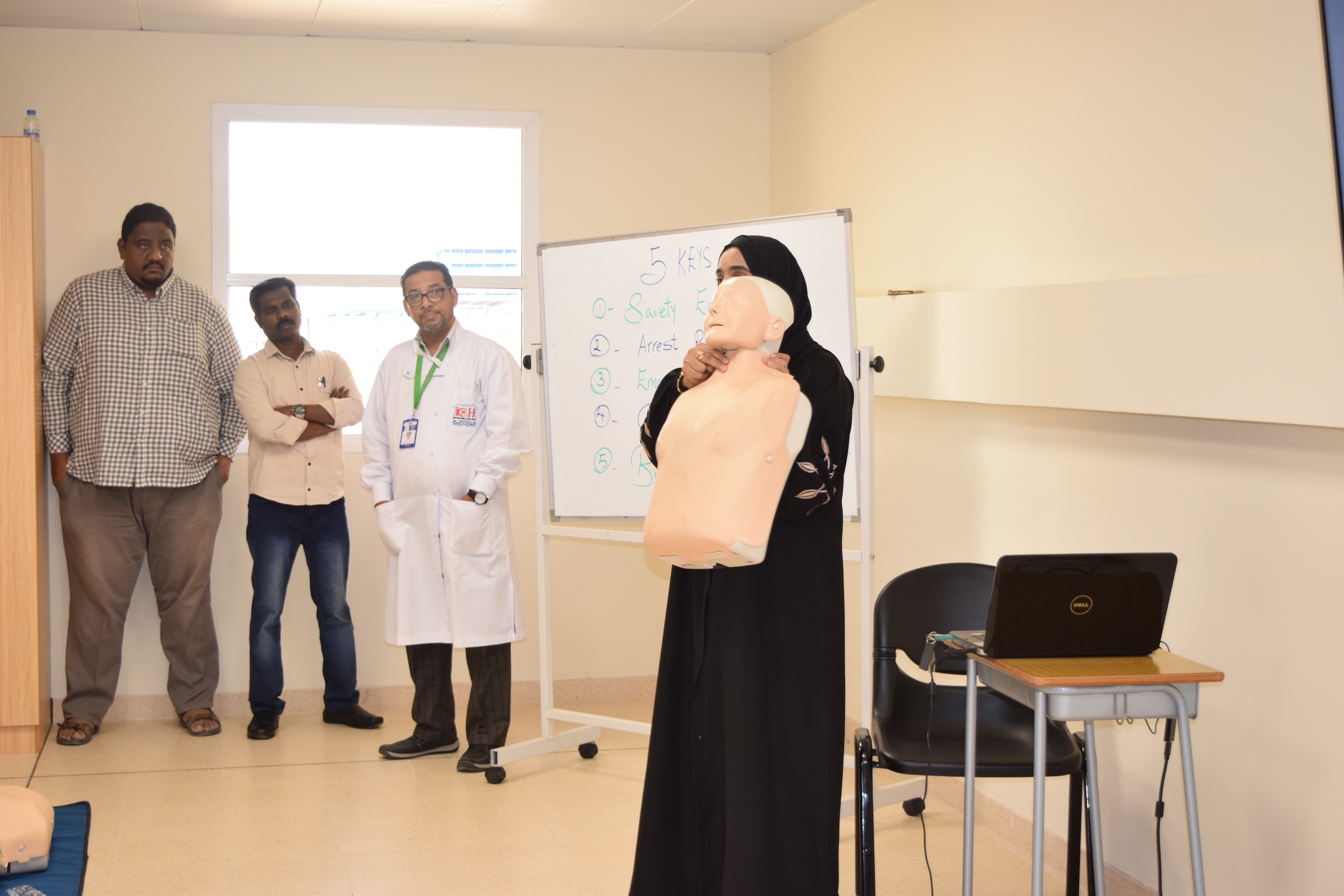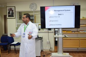 تطرقت الورشة في اليوم الأول إلى مواضيع مهمة منها التوعية بأهمية الإسعافات الأولية في مكان العمل، وكيفية التعامل مع بعض الحالات الحرجة كحالات التوقف القلبي وحالات الإغماء والسقوط والكسور. وتطرقت الورشة أيضا في اليوم الأول إلى حالات الاضطرابات الهيكلية العضلية والتعامل اليدوي الصحيح في نقل المعدات والأدوات.
