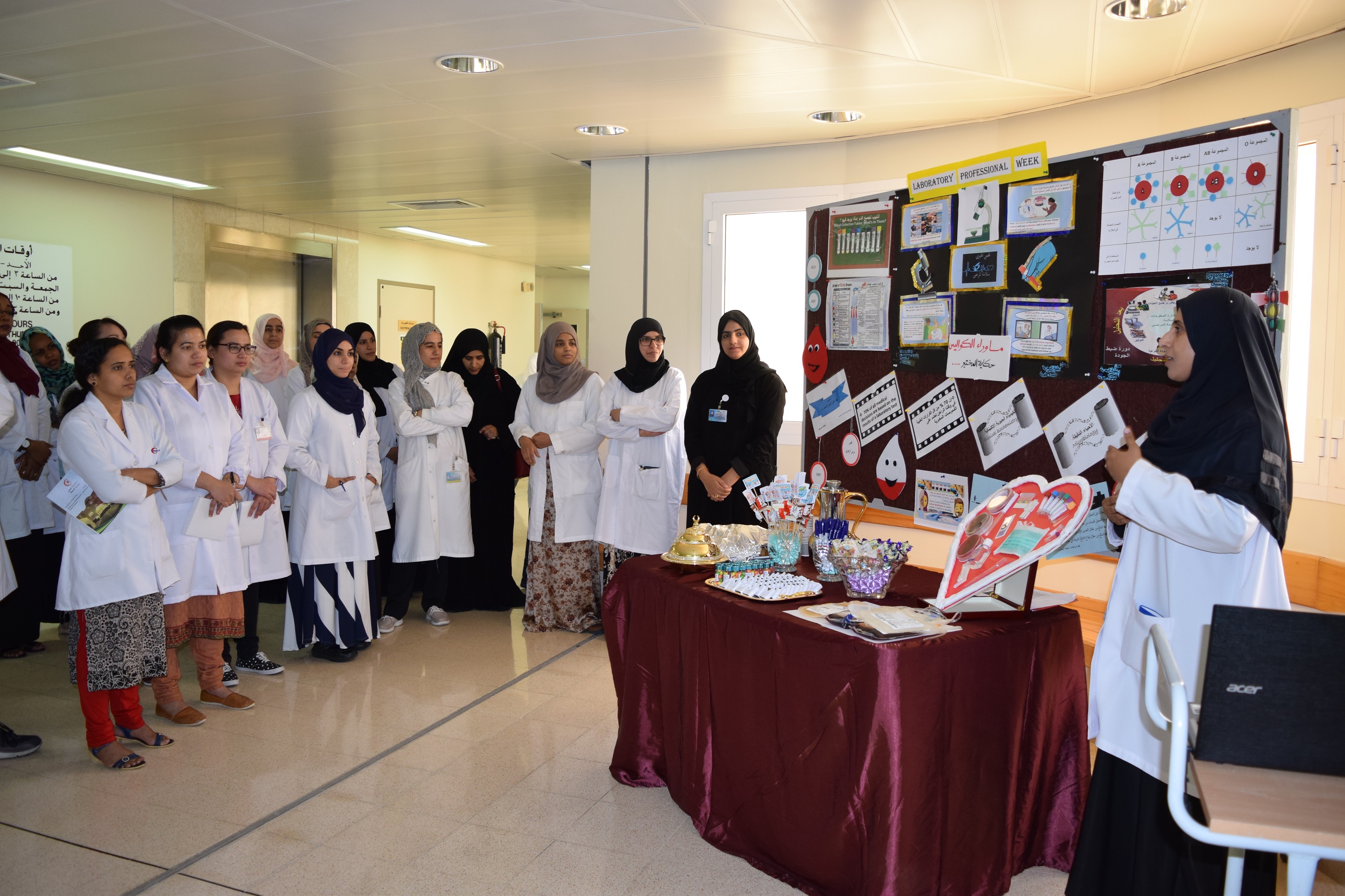 هذا وعلى هامش الورشة احتفل قسم المختبرات الطبية بمستشفى نزوى بأسبوع المختبرات الطبية وذلك بإقامة معرض تعريفي مصغّر اُستعرض فيه إبرز إنجازات القسم في السنوات الأخيرة. حيث اشتمل المعرض على عرض للملصقات العلمية، والمجسمات الهادفة للتوعية بالدور الحيوي التي تلعبه المختبرات الطبية داخل أي مؤسسة صحية.