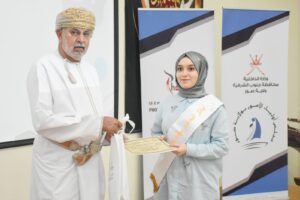وأضافت: إن هذا التكريمَ دافعٌ لنا لمزيدٍ من الجهدِ والدراسة وشهادةٌ نفخرُ بها وستجدُ صدَاها عملاً وإبداعًا وتفانيًا في مستقبلنا ونيابةً عن إخوانِي الطلبة المكرمين نرفعُ شكرنا وولاءنا لسلطاننا المفدى كما نشكرُ مجلس أولياء الأمور بولاية صور على هذه اللفتَةِ الكريمةِ والثقةِ الغاليةِ التي نعتزُ بها وستظلُ وسامًا على صدورِنَا وشاهدًا على ما توليِهِ السلطنة من اهتمامٍ بالمجيدين في كافةِ المجالاتِ).