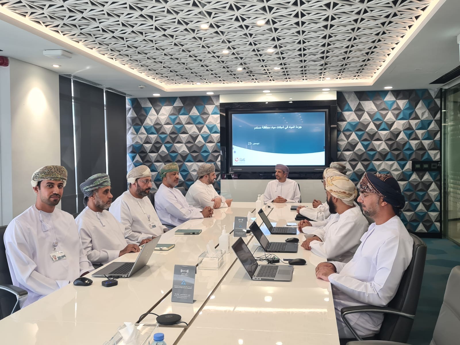 وتم خلال اللقاء مناقشة تنفيذ مشروع التوسع في خدمات الصرف الصحي غير المعالجة بمحافظة مسندم والذي تنفذه شركة نماء لخدمات المياه، حيث استعرضت الشركة أهم أهداف المشروع، والنتائج المتوقعة وأبرز التحديات والحلول المناسبة لها بما يتوافق مع التطورات العالمية في هذا المجال.