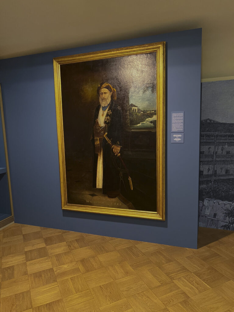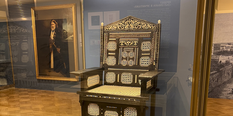 ويتضمن المعرض أيضًا كرسيًّا يعود إلى القرن 12هـ/18م (سلطنة عُمان وزنجبار) مُعارًا من أسرة الشيخ السير مبارك بن علي الهناوي، إضافة إلى مجموعة من الحلي والأزياء التي تُنسب إلى السيدة سالمة بنت سعيد البوسعيدية التي عاشت في الفترة ما بين (١٢٦٠–١٣٤٢هـ/١٨٤٤–١٩٢٤م)، وقد انفرد السيدة سالمة بكتابتها لسيرتها الذاتية البارزة باللغة الألمانية، بعنوان “مذكرات أميرة عربية من زنجبار”؛ كأول سيرة لامرأة عربية في التاريخ، وتقدم مذكرات السيدة سالمة مع المقتنيات المعروضة لمحةً مدهشة عن الحياة في البلاط السلطاني في القرن (١٣هـ/١٩م)، وتشهد على جودة وتنوع الأزياء والحلي التي كانت ترتديها نساء البلاط.