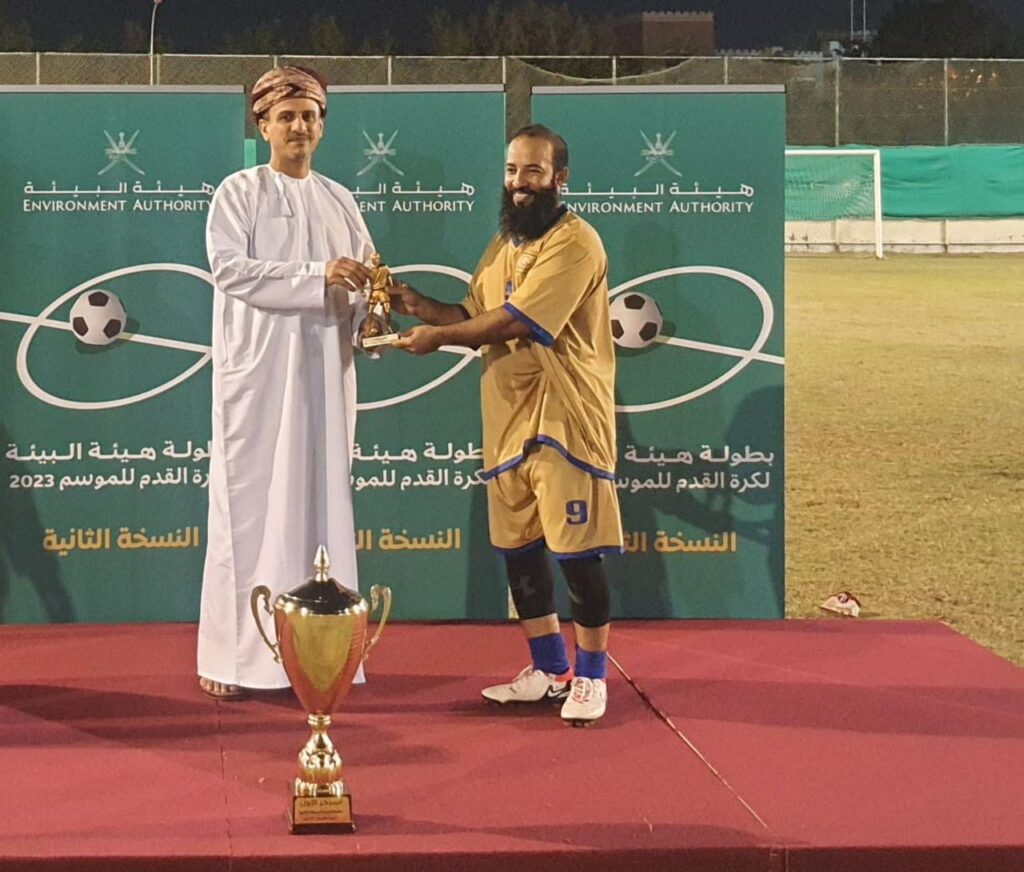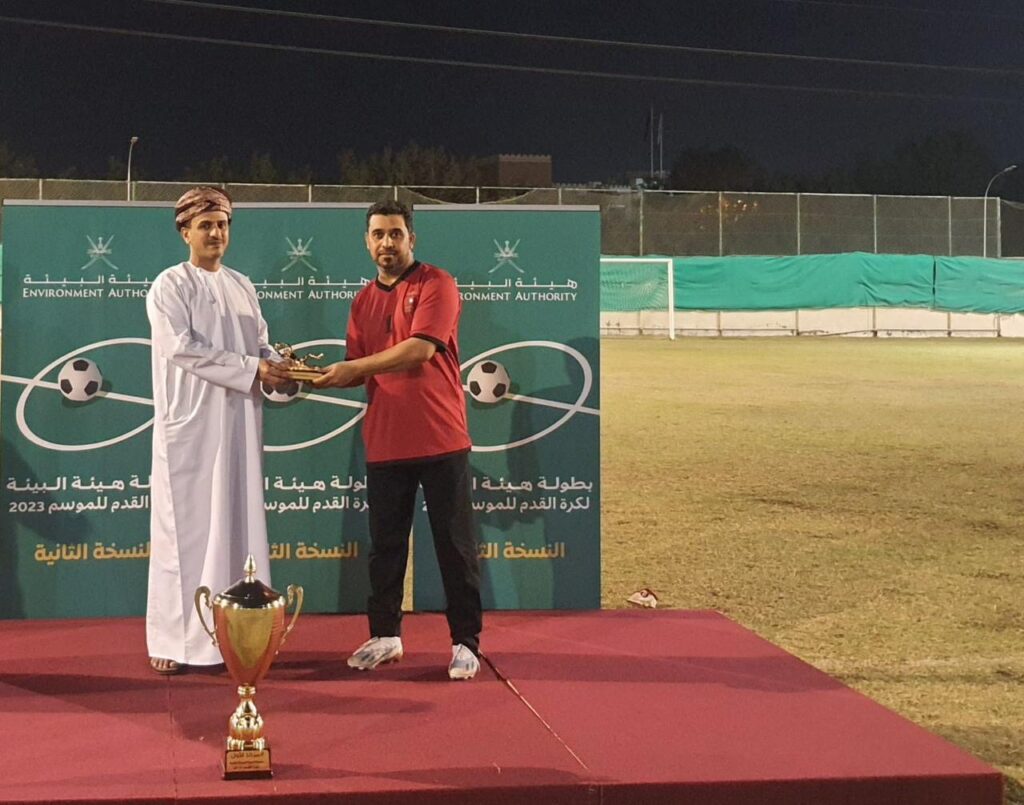 توج مؤخراً فريق الشؤون الإدارية والمالية (أ) بطلاً لبطولة هيئة البيئة الكروية لعام 2023 في نسختها الثانية بعد فوزه في المباراة النهائية على فريق إدارة البيئة بجنوب الباطنة بهدف مقابل لا شيء أحرزه المهاجم علي بن أحمد البلوشي، رعي فعاليات ختام البطولة سعادة الدكتور عبدالله بن علي العمري رئيس هيئة البيئة.