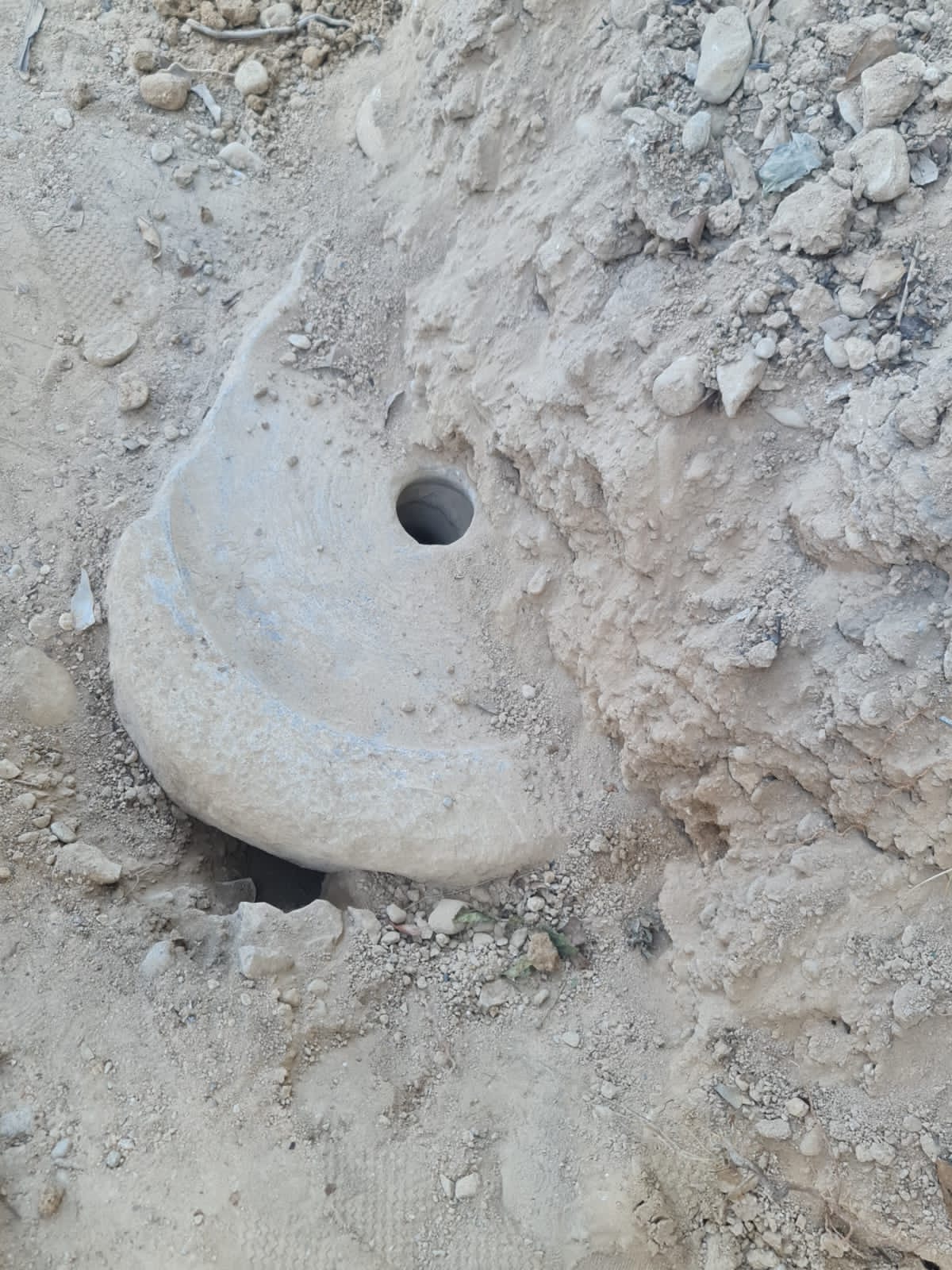 أثناء عملية الحفر ظهرت صخرة الرحى في حارة حجرة الشيخ بولاية وادي المعاول بمحافظة جنوب الباطنة.