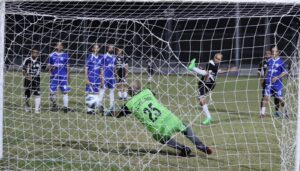 إلا أن الملك الغشباوي لم يتمالك نفسه وشن هجمات تتاليًا، ولم يهدأ له بال حتى أحرز هدف التعادل من نقطة الجزاء عبر لاعبه علي الحمراشدي، لينتهي الشوط الأول عليه.