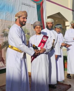وفي نهاية الاحتفال قام سعادة طارق بن محمد الخروصي عضو مجلس الشورى ممثل ولاية العوابي راعي المناسبة بتكريم الطلاب المجيدين بجميع صفوف المدرسة.