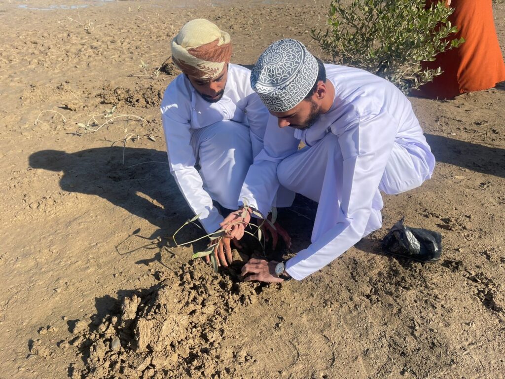 ومن ثم قام الطلبة باستزراع عدد ١٠٠ شتلة من أشجار القرم فى خور قريم بولاية المصنعة والذي يعتبر تطبيق عملي كأحد الحلول المتخذة للحد من هذه الظاهرة حيث تعمل كمنطقة عازلة تحمي الأرض من أضرار الرياح والأمواج.