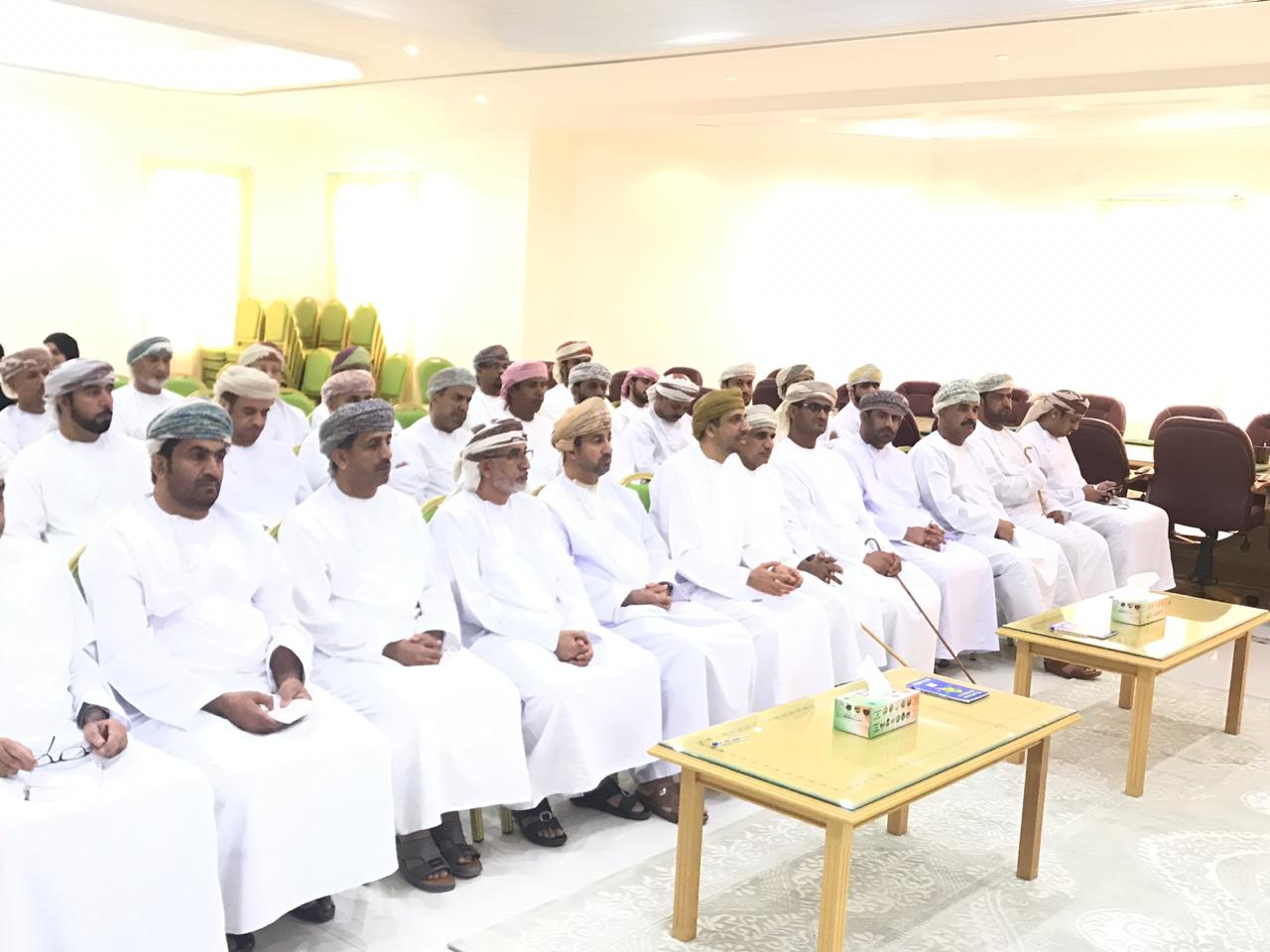 عقد بمكتب محافظ البريمي لقاء للتعريف بمراحل تنفيذ مشروعي تطوير النظم المزرعية التقليدية والاحلال والتجديد لنخيل التمور والمزمع تنفيذه في فلجي صعراء والبريمي ونظمته وزارة الزراعة والثروة السمكية تحت رعاية سعادة السيد إبراهيم بن سعيد بن إبراهيم البوسعيدي محافظ البريمي بحضور المكرم الشيخ أحمد بن ناصر النعيمي عضو مجلس الدولة وأعضاء المجلس البلدي ووكلاء الافلاج وعدد من المشايخ والمزارعين.