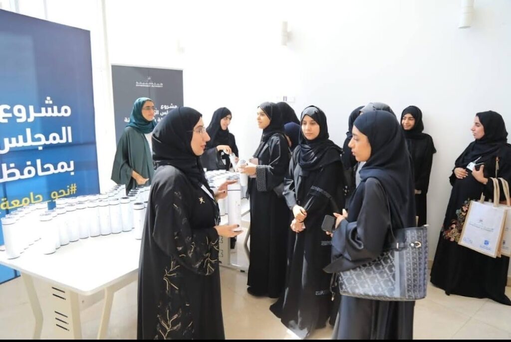 بحضور أكثر من ١٣٠٠ طالب وأكاديمي البيئة بشمال الباطنه تطلق مشروع جامعة صحار بلا بلاستيك