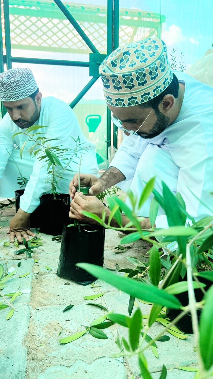 المختصون بإدارة البيئة بمحافظة الداخلية يباشرون عملية تطعيم شتلات الزيتون