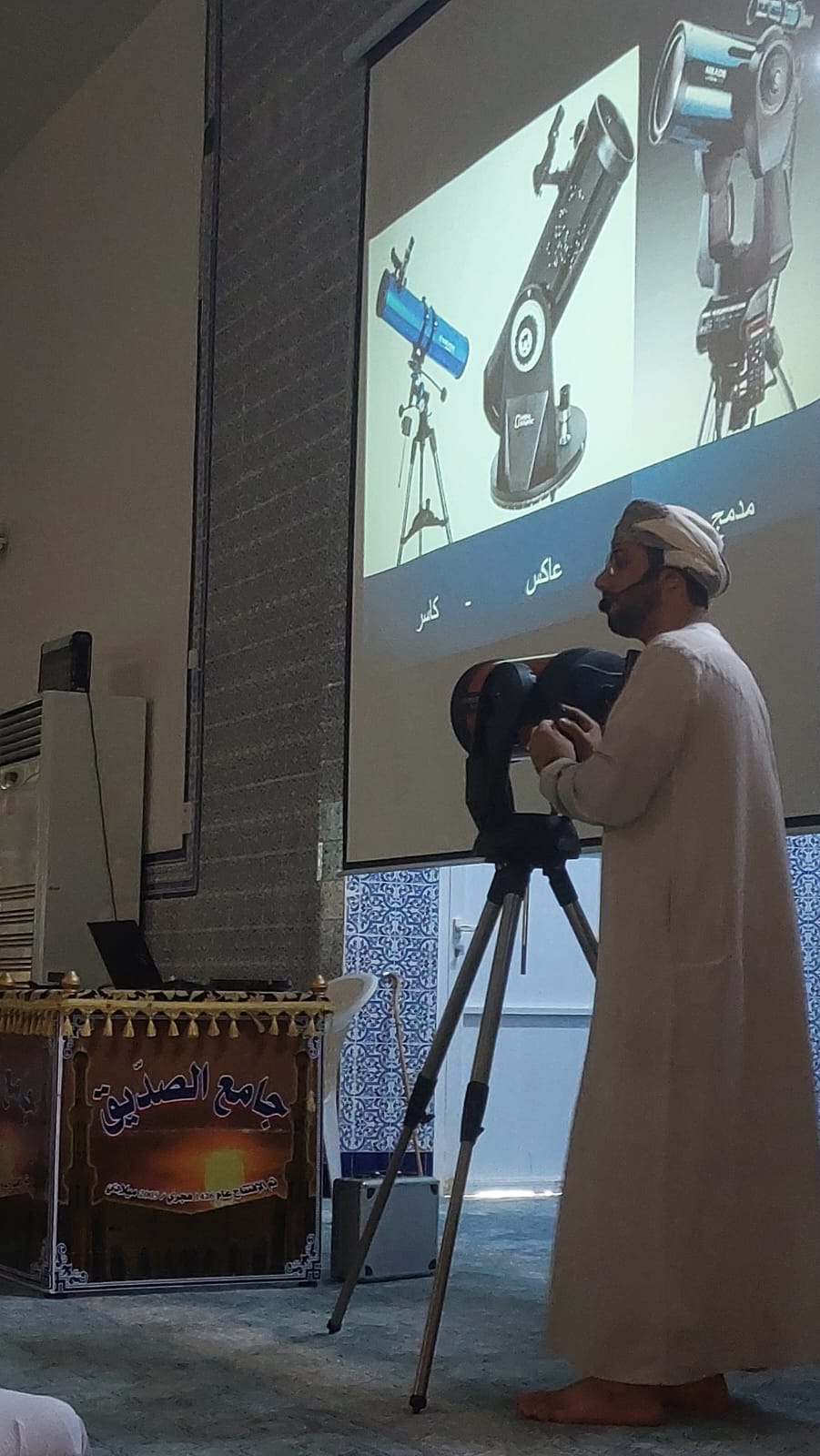 أقيمت اليوم بعد صلاة الجمعة بجامع الصديق بولاية الحمراء محاضرة بعنوان ” تقنيات الرصد الحديث ونشأة الكون وفق التصور الإسلامي ” قدمها سعيد بن سليمان العبري رئيس النادي الفلكي بجامعة السلطان قابوس