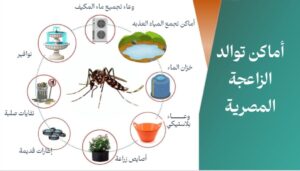 تفريغ أوعية تخزين المياه وتنظيفها والتخلص من المياه المجمعة من أجهزة التكييف وتغيير مياه النوافير واحواض السباحة والاوعية الزراعية وتغيير المياه في أوعية شرب الحيوانات والطيور والتغطية المحكمة لخزانات المياه سواء على أسطح المنازل او الخزانات الأرضية والتخلص من الأواني المنزلية التالفة .