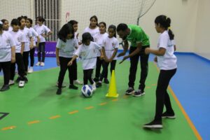 واختتمت الزعابية كلمتها بالقول: لن يتأتى كل هذا العمل إلا بتكاتف الجميع، لان العمل المشترك هو اساس النجاح وهذا ما نصبو اليه في المرحلة القادمة، وهو بناء مجتمع ذات قاعدة نسائية رياضية متينة، كما أننا نتعهد بدعم كافة المبادرات التي تخدم هذا القطاع إذا ما استوفت به كافة الاشتراطات والضوابط التي تحقق بناء جيل نسائي ممارس لكرة القدم. وتخللت الزيارة عدداً من الفقرات منها زيارة لمعرض للصناعات الحرفية والأسر المنتجة وعدد من الفقرات الفنية.