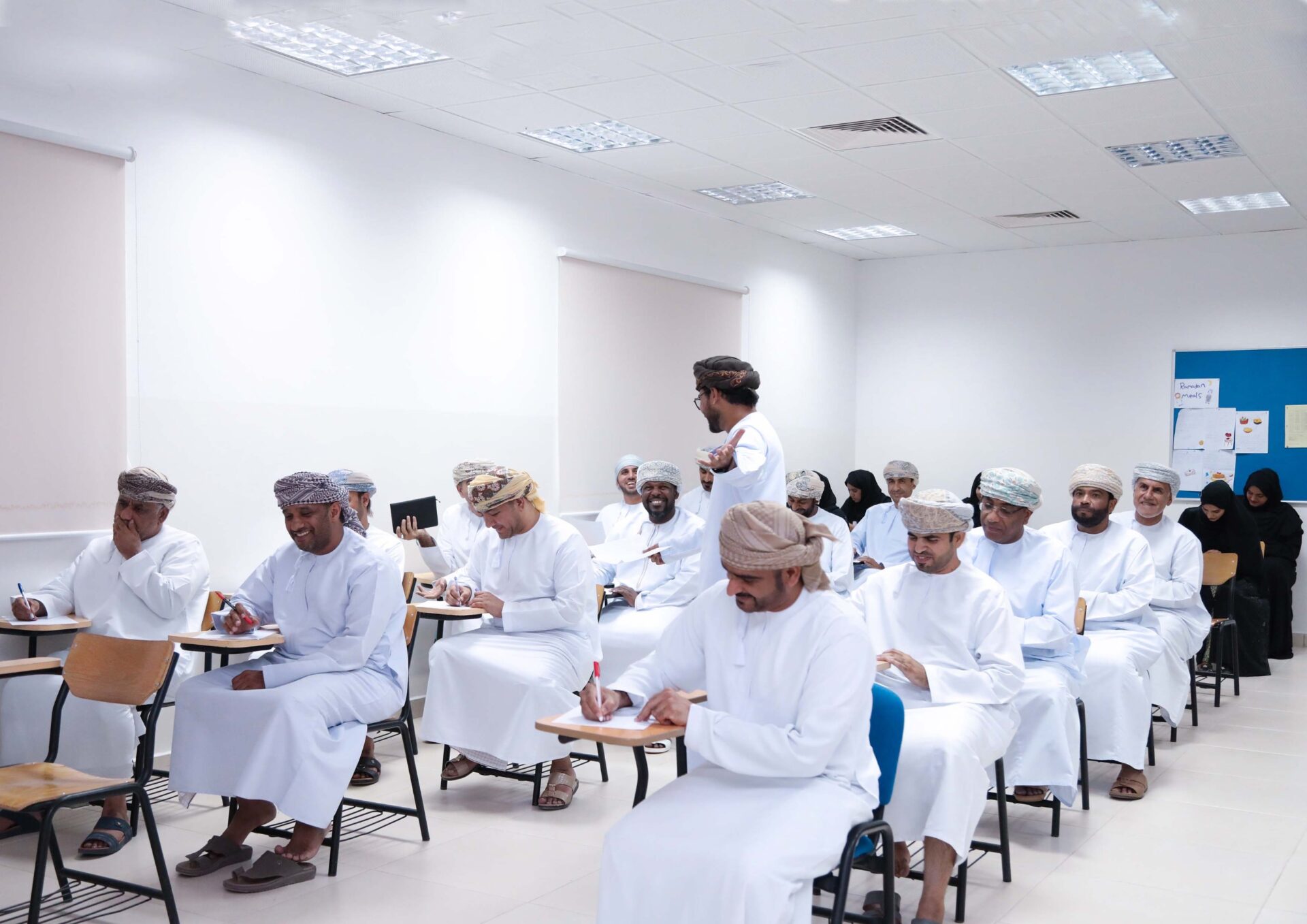 وقد تضمن اليوم الأول من البرنامج أربع دورات تدريبية وهي: دورة تعليم اللغة الإنجليزية لبيئة العمل والتي يقدمها كل من حميد المعمري وموزة العبرية وعبدالله البلوشي وسليمان المعمري وتستمر لمدة أسبوع حيث تهدف الدورة إلى تحسين قدرة المشاركين على التواصل الفعال في بيئة العمل، وتطوير المفردات المهنية لديهم، ورفع ثقتهم في التحدث باللغة الإنجليزية في مواقف الحياة العملية إضافة إلى تزويدهم بالمهارات اللغوية والمعرفة الثقافية للتفاعل بفاعلية في بيئة عمل متنوعة، ودورة التحضير لاختبار الايلتس والتي يقدمها كل من سوسان جيلاني ومزنة المعمرية ومحمد عامر ومحسن عميري وتستمر لمدة أسبوع وتهدف إلى تطوير قدرة المشاركين على فهم النصوص الصوتية في اختبار الايلتس وتحسين مهاراتهم في كتابة المقالات والتقارير الأكاديمية، والتعرف على هيكل الاختبار، وورشة عن الصحة والسلامة البيئية والتي قدمها المهندس أحمد اليحيائي حيث تعرف المشاركون على مفهوم الصحة والسلامة وأهميتها، وتحديد وتقييم المخاطر في بيئة العمل، وكيفية التعامل مع حالات الطوارئ وتقديم الإسعافات الأولية، وما يتعلق بإجراءات السلامة المتعلقة بالكهرباء، إضافة إلى ورشة تطبيقات الذكاء الاصطناعي في بيئة العمل قدمتها نسيم البلوشية تناولت فيها المفاهيم الأساسية للذكاء الاصطناعي وتطبيقاته، وكيفية استكشاف الخوارزميات الأساسية المستخدمة فيه، وكيفية استخدام الأدوات والبرمجيات الشائعة فيه، قامت بعدها المحاضرة باستعراض تطبيقات الذكاء الاصطناعي في مختلف الصناعات والمجالات.