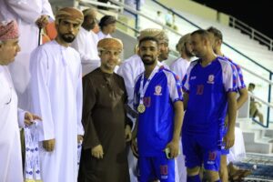 بعدها كرم المجيدين في البطولة حيث حصل ربيع العوفي إداري فريق شباب مسلمات على جائزة أفضل إداري وحقق فيصل السيابي من فريق الهرم جائزة هداف البطولة ونال جائزة أفضل لاعب زهير الحسني من فريق الحضيب وحصل حارس مرمى فريق شباب المراغ حسين الفارسي جائزة أفضل حارس بالبطولة، بعد ذلك كرم فريق الهرم بالميداليات الفضية وجائزة مالية وتوج فريق شباب المراغ بدرع البطولة وبالميداليات الذهبية وجائزة مالية.