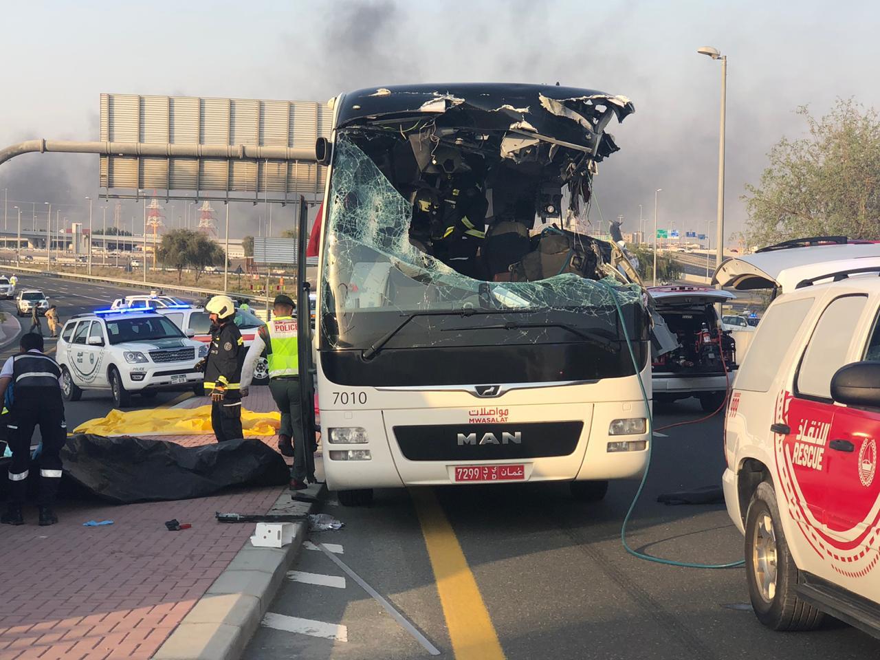 وقالت شركة النقل الوطنية العمانية/ مواصلات/ في بيان لها انه فور تلقيها نبأ الحادث عملت على متابعة التفاصيل مع الجهات المختصة في إمارة دبي للوقوف