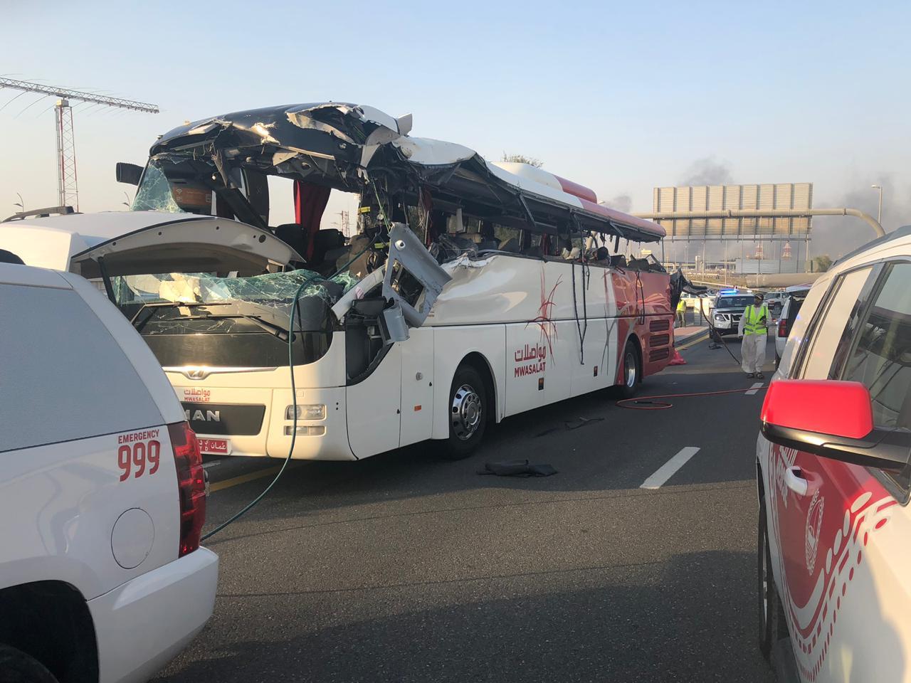 تعرضت إحدى الحافلات التابعة لشركة النقل الوطنية العمانية (مواصلات) لحادث مروري وقع مساء اليوم في امارة دبي بدولة الامارات العربية المتحدة نتج عنه وفاة 15 شخصا من جنسيات مختلفة واصابة 5 آخرين.