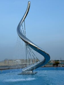 ويشتمل المشروع على مسطحات خضراء بمساحة تصل إلى 23000متر مربع، وعدد 240 شجرة من أشجار الظل و1930 شجيرة، بالإضافة إلى ممرات للمشاة بأطوال وألوان مختلفة، ومسارات للدراجات والألعاب الرياضية ومنطقة ألعاب بأرضية مطاطية بمساحة تصل الى 660 متر مربع، و40 موقفًا للسيارات، ونافورة بتصميم عصريّ حديث، كما استعمل نظام ريّ حديث لاستغلال المياه المعالجة الناتجة من محطات الصرف الصحي لريّ أعمال التشجير.