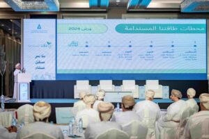 وفي المحور الثاني تم مناقشة موضوع الطاقة المتجددة من خلال تقديم ثلاث أوراق عمل، جاءت الأولى بعنوان “استراتيجية شركة نماء للتزويد” قدمها المهندس هلال الهادي من شركة نماء للتزويد، وتناولت الورقة الثانية عنوان مشاريع الطاقة المتجددة المتوسطة والكبيرة قدمها المهندس عبدالله الكلباني من مؤسسة الكون الأخضر وتناولت مشاريع الطاقة المتجددة والهيدروجين الأخضر وبداية سلسلة مشاريع الطاقة المتجددة الكبيرة في سلطنة عمان.