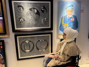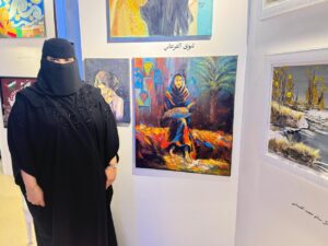 وقالت أيضا ثنوى القرعاني من المملكة العربي السعودية:لوحاتي تتحدث عن أهمية المرأة الخليجية والعمانية حيث أنها أساس كل بيت وقمت حيث رمزت لها بالابواب التراثية وتجلس المرأة بكل فخر وتقدم العطاء لأفراد اسرتها وتقدم لهم التمرواللوحة الثانية يدل عن حنان الأم وهي قصتي لاني فقدت والدي منذ صغري واحتوتني امي ومع مرور الزمن أصبحت شخصيتي امتداد لامي لأن انا ماعليه الأن بفضل من الله ثم لوالدتي واللوحة الأخيرة للجمال العربي مستوحاه منوجنال الفنانة زينب العسكري من المدرسة الواقعية بألوان زيتية.