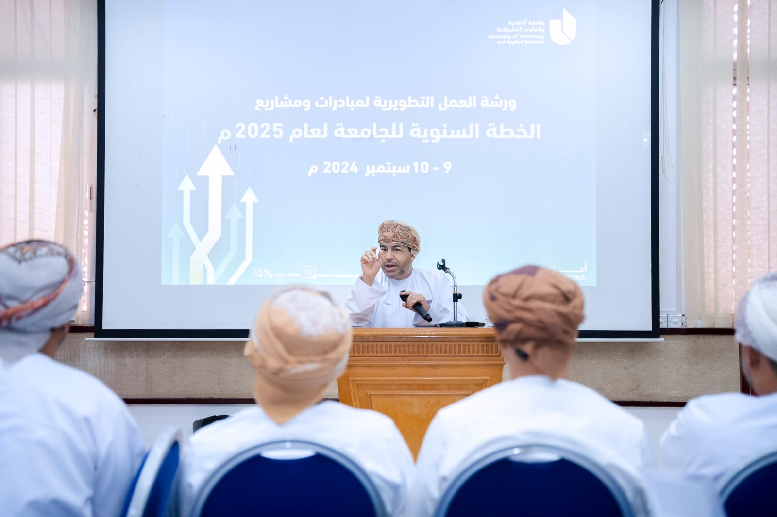 بهدف إعداد مسودة الخطة السنوية لجامعة التقنية والعلوم التطبيقية وخطتها التفصيلية لعام 2025 نظمت جامعة التقنية والعلوم التطبيقية اليوم الاثنين 9 سبتمبر 2024م ورشة عمل تطويرية لمبادرات ومشاريع الخطة السنوية للجامعة 2025م، وذلك لمدة يومين تحت رعاية سعادة الدكتور سعيد بن حمد الربيعي رئيس جامعة التقنية والعلوم التطبيقية في القاعة متعددة الاغراض بفرع الجامعة بمسقط وبمشاركة مختلف فروع الجامعة.