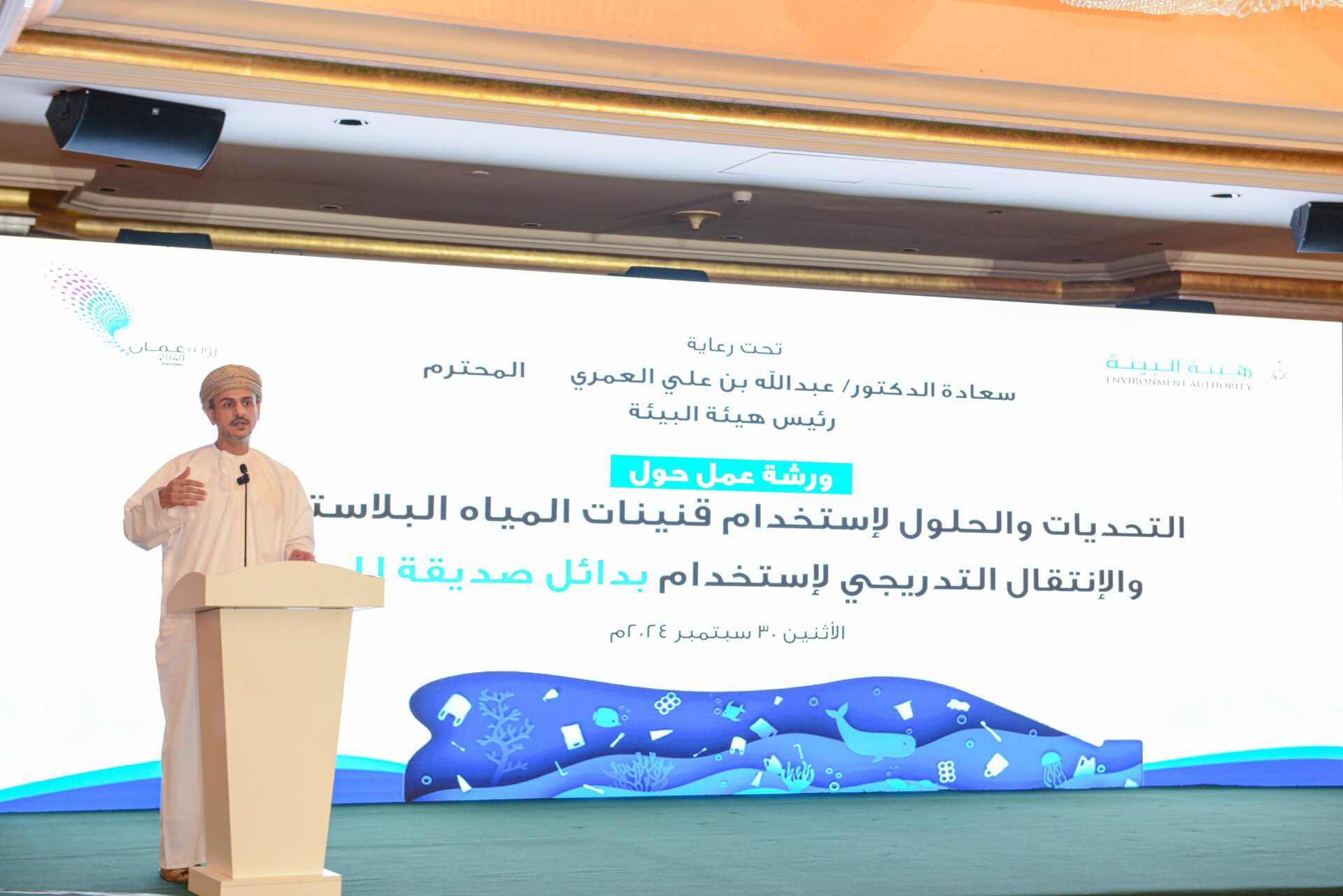 نظمت هيئة البيئة اليوم بمحافظة مسقط حلقة عمل حول الحد من مخاطر إستخدام عبوات المياه البلاستيكية على الصحة والبيئة”، وذلك برعاية سعادة الدكتور عبدالله بن علي العمري رئيس هيئة البيئة.