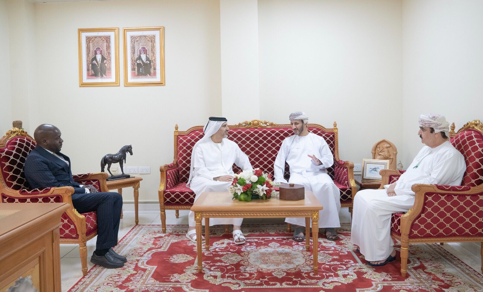 ايمانًا من تعزيز الروابط الأخوية بين سلطنة عمان ودولة الإمارات العربية المتحدة في مجال الفروسية وسباقات الخيل، استقبل السيد منذر بن سيف بن حمد البوسعيدي رئيس مجلس إدارة الاتحاد العماني للفروسية والسباق بمكتبه سعادة فيصل الرحماني رئيس الاتحاد الدولي لسباقات الخيول العربية الأصيلة، جرى خلال اللقاء مناقشة كافة الأمور المتعلقة بسباقات الخيل على المستوى الخليجي والإقليمي والدولي.