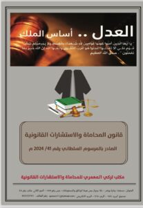 دشنت مكتبة السنهوري بالتعاون مع مكتب تركي المعمري للمحاماة كتاب قانون المحاماة والاستشارات القانونية الجديد الصادر بالمرسوم السلطاني رقم 41/2024 وسيتم توزيعه مجاناً لجميع المحامين .